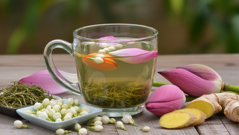 Чай — зеленый чай Thai Nguyen с жасмином, лотосом или имбирем.