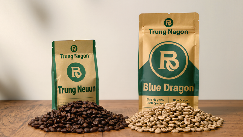 Кофе — робуста и арабика от популярных брендов Trung Nguyen и Blue Dragon.